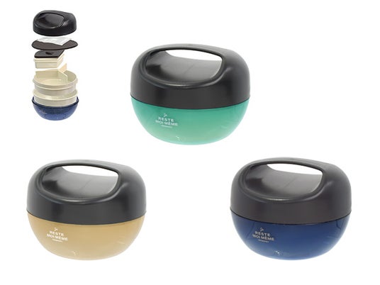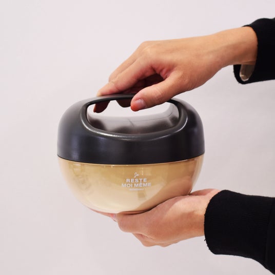 カーリングのストーンのような形、透明感のある見ためはインパクト大。誰かに自慢したくなっちゃうランチボックスです。