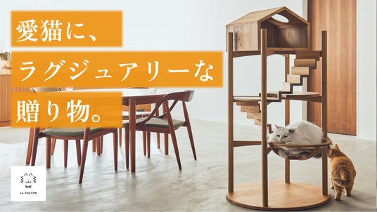<愛猫の至福のラグジュアリースペース。お部屋に調和し見惚れる天然木キャットツリー>と題し、「猫用の家具もインテリアの一部として美しくあってほしい」という思いから、今回のキャットツリープロジェクトは立ち上がりました。