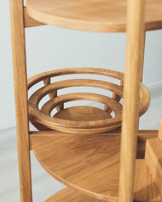 ナラ材を贅沢に使用し、木の温かみと自然そのものの美しさを生かしつつ、長く愛用できる耐久性を実現しました。さらに、表面は丁寧に磨き上げられ、滑らかな仕上がりに。持続可能な森林資源から調達された木材を用いることで、環境への配慮も忘れません。