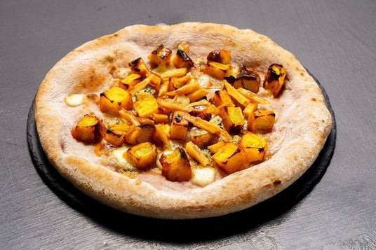 コジコジの好物、さつまいもを生地にもトッピングにもたっぷり使用したピザです。