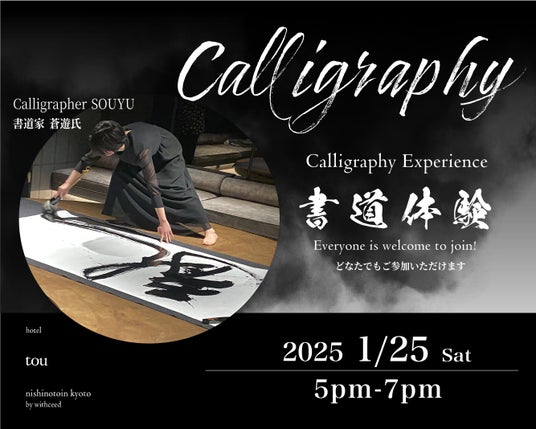 ウィズシード・ホスピタリティ・マネジメント株式会社(所在地:東京都中央区、代表取締役:小谷田孝行)が運営するホテル『hotel tou nishinotoin kyoto by withceed (ホテル トウ 西洞院 京都 バイ ウィズシード)』(総支配人:島元亨)は、旅行者と地元の方との交流機会を創出し、古都京都で古来からの日本文化を体験することで、さらに想い出深い京都の旅を演出したいという思いから、京都在住の書道家による無料の『書道体験ワークショップ』を開催いたします。