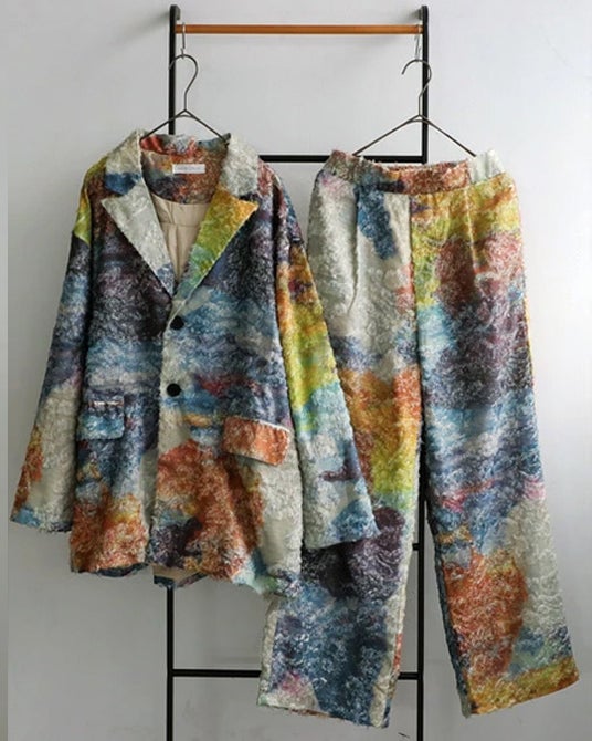 高級感たっぷり『アート柄ジャケット×ワイドパンツ』