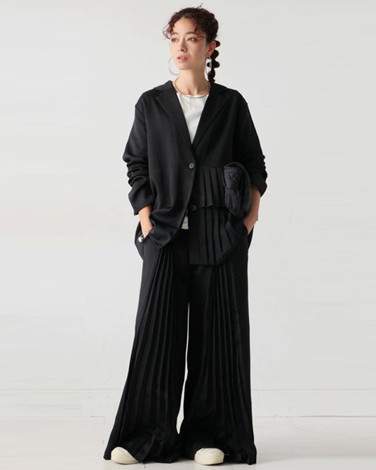 存在感纏う『プリーツジャケット×プリーツパンツ』