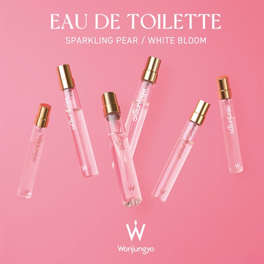 上品な香りと手のひらサイズで持ち運びやすさが魅力の「ウォンジョンヨ オードトワレ」。2022年に数量限定で販売して以来の新たな香りが登場いたします。新作は「Wonjungyo Hair(ウォンジョンヨヘア)」のシャンプー・トリートメントの香り「スパークリングペアー」と「ホワイトブルーム」の2種。バスタイムのひとときを贅沢に彩る華やかなふたつの香りを、日常でも気軽にお楽しみいただけます。