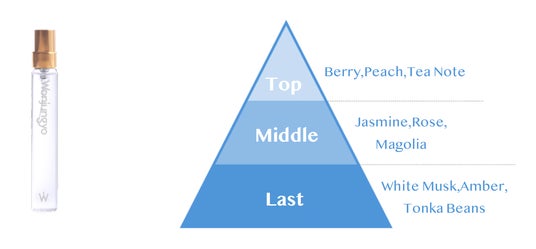 「ホワイトブルーム」は、ローズやジャスミンなどの可憐な花々に、大人っぽさをプラスするアンバーをブレンド。華やかで引き込まれるような、魅惑的な香りです。ラストノートのホワイトムスクの優しい香りが、誰からも愛される上品な清潔感も演出します。