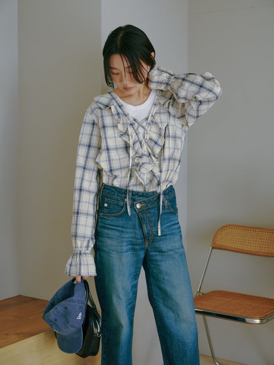 ビッグデニムを重ね履きしたイメージのダブルウエストデザイン。