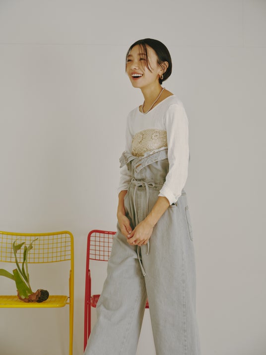 腰回りは深めの股上でゆったりとしたサイジングで安心感のある履き心地。