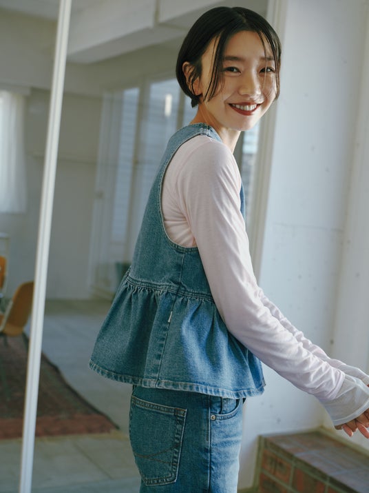着丈短めのペプラムデザインで、バランスの良いレイヤードスタイルが作れるアイテム。