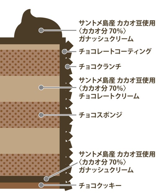 カカオの力強い風味とフルーティー感をもつサントメ島産カカオ豆のチョコレート(カカオ分70%)を使用。