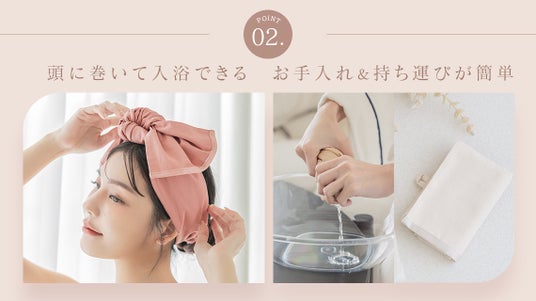 頭に巻いて使える長さのため、入浴時は周囲に配慮をしながら使うことができます。