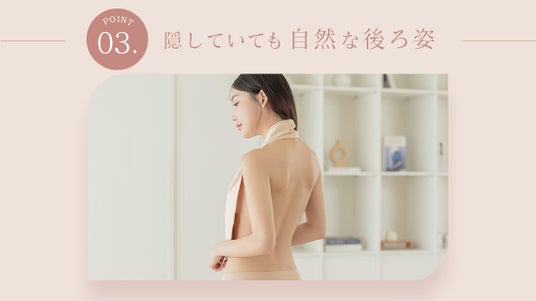 首にかける部分は華奢な細さになっているため、タオルで胸元を隠していても、後ろ姿がすっきりと自然に見えて首元がもたつかないのもポイント。