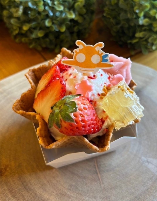 お春限定の特製桜風味アイスクリームを、パリッとしたモナカにたっぷり挟みました。一口頬張ると、桜の香りがふんわりと広がり、口の中に春の訪れを感じることができます。桜の季節をそのまま閉じ込めた贅沢な味わいをぜひお試しください。