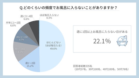 一方で22.1%(※)の方は週に1回以上お風呂に入らない日があることもわかりました。