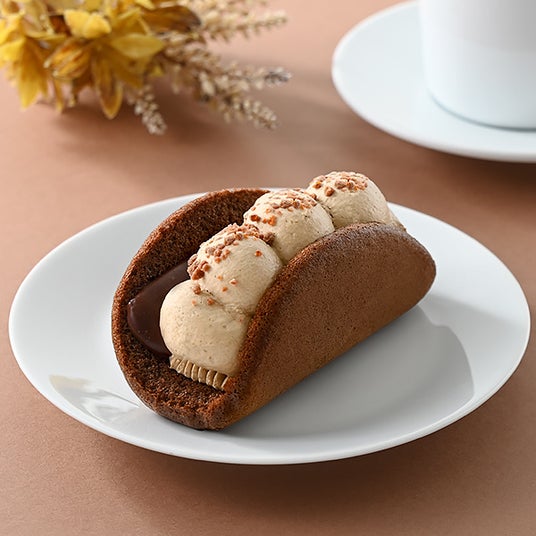 【内容】食感の異なる2種のクリーム(コーヒーバタークリーム、コーヒーカスタード入りホイップクリーム)と生チョコをしっとりとした生地で包みました。コーヒーと生チョコの濃厚な味わいを楽しめるスイーツです。