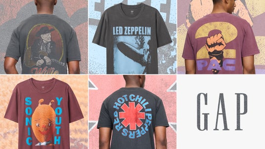 アーティスト本人のグラフィックやバンドロゴ、Gapの創業年1969に発表された アルバムのアートワークなどがデザインされたTシャツがラインナップ