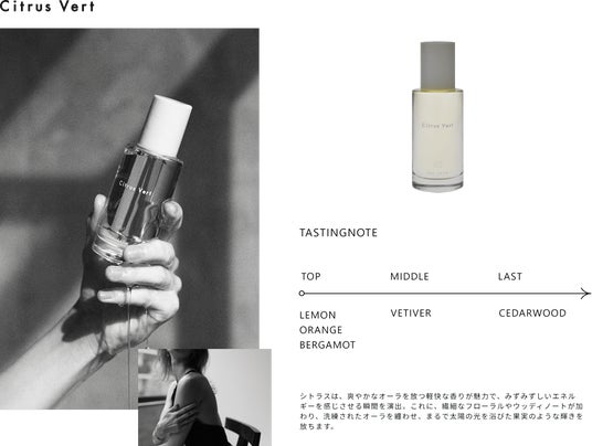 フレッシュなシトラスが香り立つ、軽快で明るいエネルギーを感じる香り。