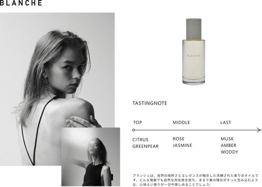 ピュアで透明感のある香りが、自然な美しさを引き立てます。