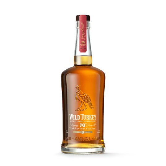 ウイスキー業界において世界最長の在籍年数を誇るマスター・ディスティラー「ジミー・ラッセル」のワイルドターキー在籍70周年を祝して発売される記念の限定バーボン。限定ボトルは、ジミーのシグネチャーである8年熟成の101プルーフ(アルコール分50.5%)のバーボンに、ジミーお気に入りの熟成庫から厳選した、8~9年熟成原酒をブレンド。