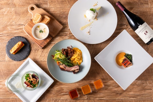 メインのボリュームたっぷりのリブをはじめ、燻製や低温調理を活かしたアメリカ4大バーベキュー料理をコースでご用意いたします。前菜、魚料理、肉料理それぞれの一皿と調和するカクテルペアリングを織り込んだ贅沢なフルコースです。特別にお客さまの目の前で、ゲストバーテンダーによるカクテルパフォーマンスをお楽しみいただけます。