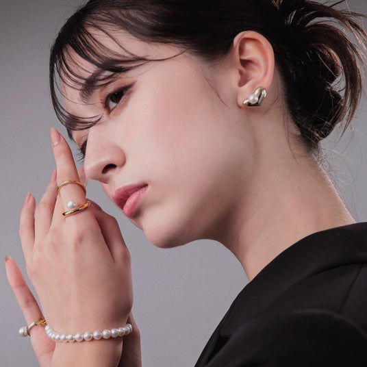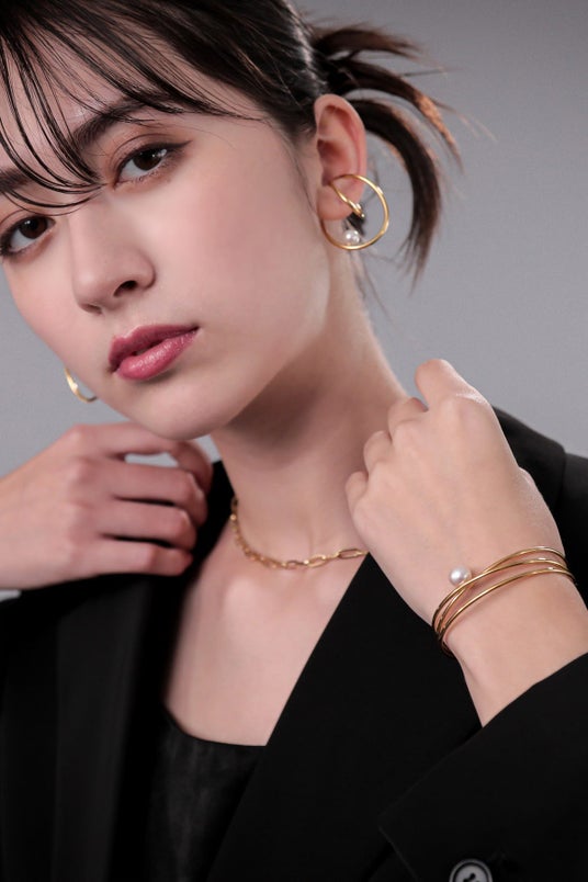 カジュアルからドレススタイルまで、艶やかなメタルとあこや真珠の組み合わせが大人の上質さと贅沢感を生み出します。