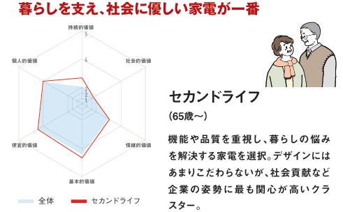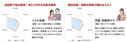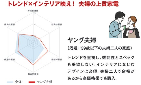 夫婦2人で経済的にも余裕が見られる夫婦層。若年の夫婦層と比べて年齢が高い分悩みも増え、高機能・高品質を重視しつつ、使用感にもこだわります。