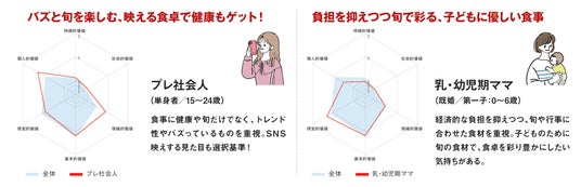 ・全体:基本的価値と便宜的価値が最も重視されており、食品に対して「安心・安全・品質の高さ」や「手軽さ」を求める傾向が強いです。