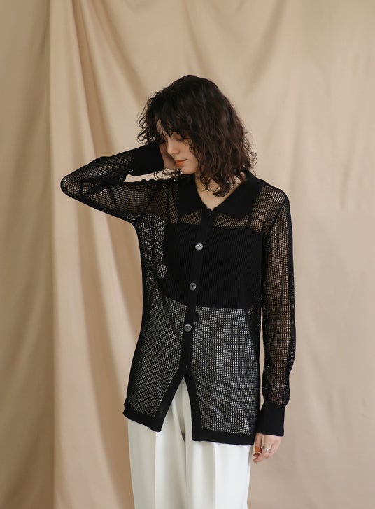 襟付きメッシュリネンカーディガン 税込4,950yen
