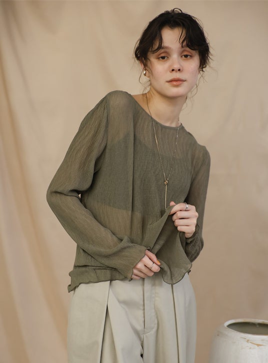 クラッシュジャガードロングカフストップス 税込3,850yen