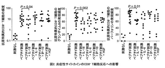 – 重症患者では血中の炎症性サイトカインIL-18が高く、これが抗原特異的CD8+ T細胞の誘導を抑制することが示されました。
