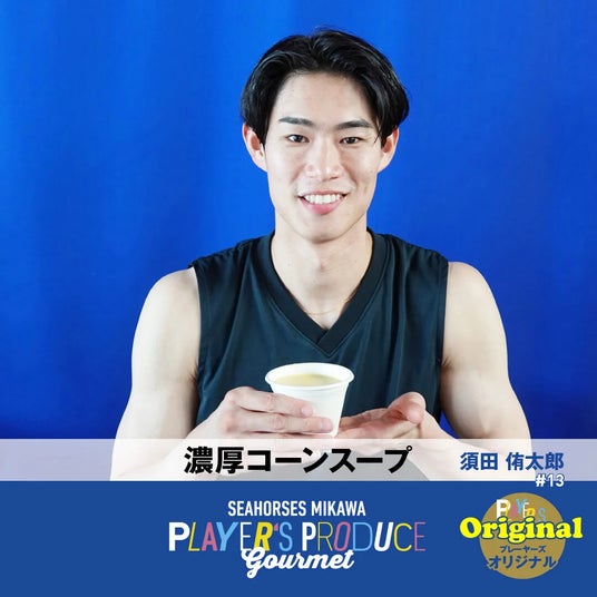 濃厚コーンスープ粒入りコーンスープは#13 須田侑太郎選手こだわりの素材を感じるシンプル味わい。