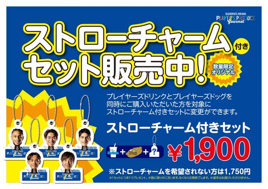 1/29(水)アルバルク東京戦にて、選手プロデュースグルメを販売します!プレーヤーズドリンクとプレーヤーズドックを同時購入をしていただいた方を対象に、ストローチャーム付きセットも販売いたします。