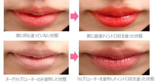 「ヌードリップミューター」は、唇の色を整え、口紅の発色をよくするだけではなく、5種の潤い保湿美容成分を配合。ヒアルロン酸Na・ホホバ種子油・ローヤルゼリーエキス・ビタミンC誘導体(テトラへキシルデカン酸アスコルビル)・ビタミンE(トコフェロール)の保湿成分が、唇をしっとりと保湿します。