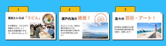 インフルエンサーが高松市内の様々な観光スポットを訪問し、それぞれの楽しかった思い出をSNSに投稿します。今回の訪問先は40を超え、様々な魅力的なスポットをSNSで発信します。