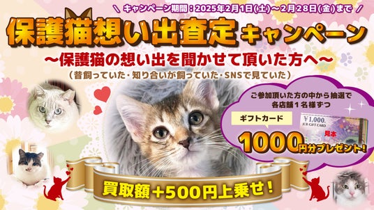 「笑顔創造」が企業理念の株式会社東洋(本社:埼玉県北本市 代表取締役/中村秀夫 以下、当社)が運営する、埼玉県内8店舗展開の、ブランド品や貴金属・ジュエリー等の買取店「エブリデイゴールドラッシュ」は、2月1日(土)から2月28日(金)までの期間限定で、“保護猫”想い出査定キャンペーンを開催致します。