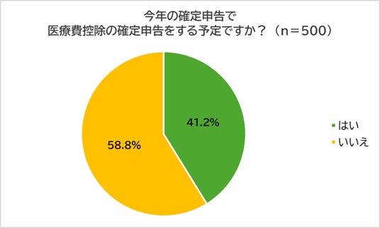まず、「今年の確定申告で医療費控除の確定申告をする予定か?」聞いたところ、41.2%が「はい」と回答しました。