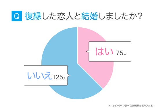 復縁経験者200人に「復縁した恋人と結婚しましたか?」と聞いてみたところ、「はい」と回答した人は約4割でした。