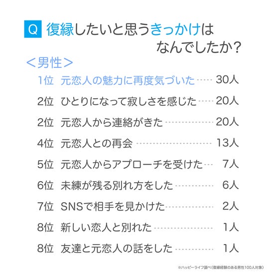 3-1.男性が復縁を願うきっかけは「元恋人の魅力に気づくこと」が最多