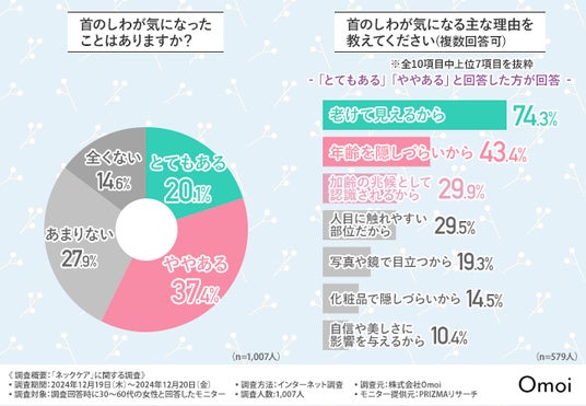 株式会社Omoi(所在地:東京都中央区、代表取締役:横井 秀至)は、30~60代の女性を対象に「ネックケア」に関する調査を行いました。
