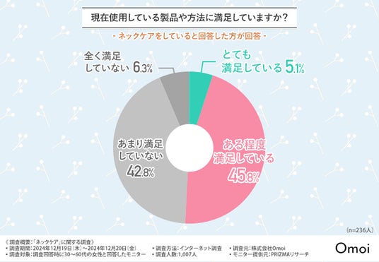 約半数の方が現在のネックケアに満足できていらず、まだ改善の余地があることが示唆されました。