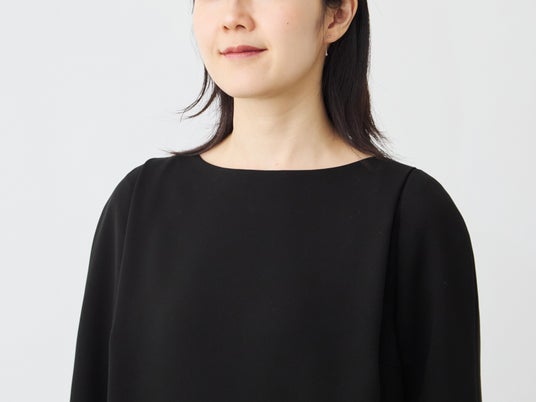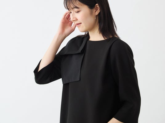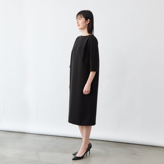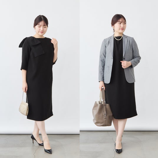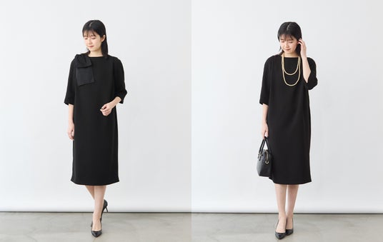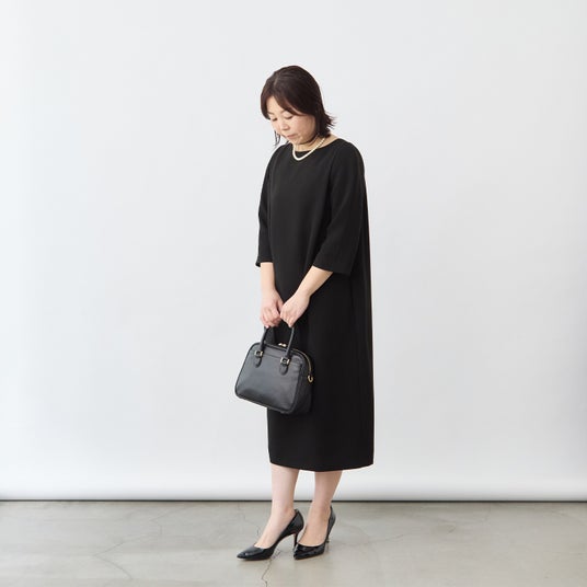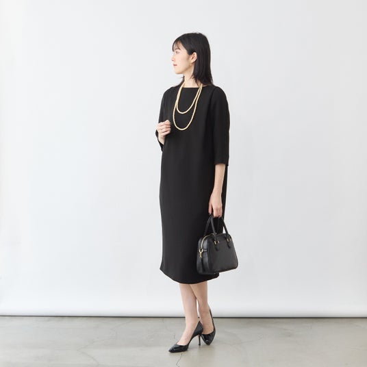 弔事にかぎらずあらゆるシーンで着られるから、「ブラックフォーマルを用意しないとと思いつつ、重い腰があがらない」という方にはもってこいの1着です。