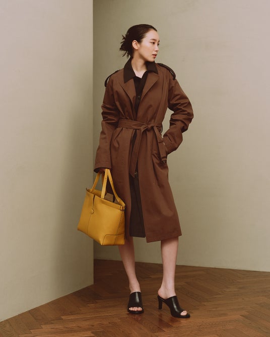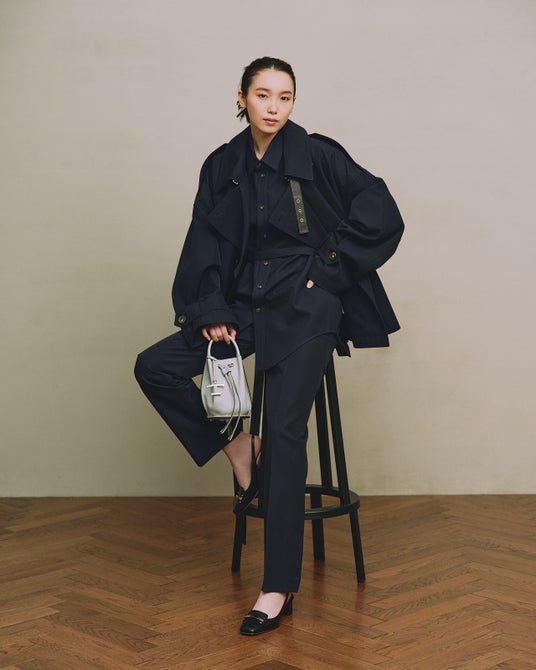 飯豊氏は「ディーアイ バッグ フォリオ」、「ゴンミーニ グローブ」といったトッズを象徴するアイテムに加え、「T タイムレス」やバレッタ(髪留め)をモチーフにしたハードウェアが光る新作の靴バッグと共にレディ・トゥ・ウェアコレクションを纏い、トッズの現代的なエレガンスとコスモポリタンな精神を体現しています。