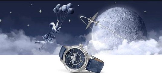 雲の下に広がるギヨシェ加工の模様は、月の光が照らしているかのようなデザインで、まるで、腕の中で旅行をしているような腕時計になっています。