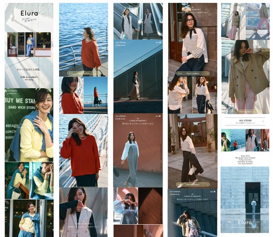 今回の春ビジュアルでは、Eluraが初めて提案するやわらかい素材ながら計算されたシルエットで大人を綺麗に魅せる「大人デニムシリーズ」や、カジュアル感とキレイ見えを両立しオンオフ活躍するリネン混素材のセットアップ、軽い着心地で初夏まで活躍し、顔色をパッと明るく魅せてくれるヴィヴィットなオレンジニットなど、ブランド価値を体現するアイテムが各スタイリングに登場。春の新しいカラーパレットを取り入れたEluraの春コレクションをぜひお楽しみください。