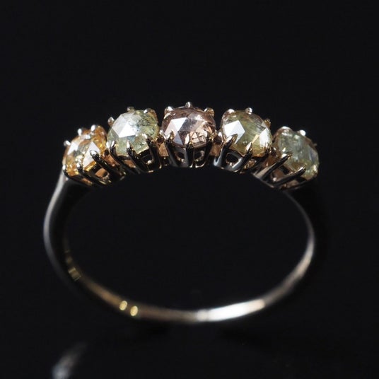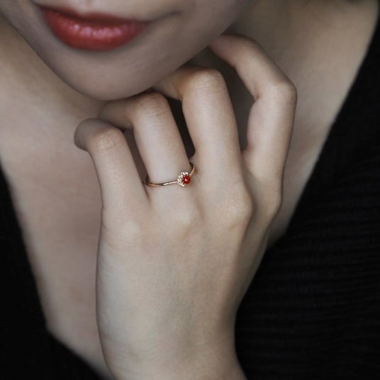 通常より0.5mm小さい3.5mmサイズのローズカットダイヤモンドをセットした『ポム』リング。小ぶりなサイズ感が指に馴染み、より愛らしい佇まいに仕上がりました。ローズカットならではの潤んだ輝きと、ナチュラルなカラーバリエーションが魅力のリングです。