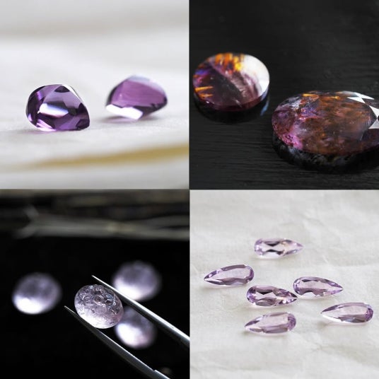 2月の誕生石アメシストをはじめ、透明感のある淡い輝きが魅力のイエローベリル、グリーンクオーツなど、春らしい色合いのルースが揃います さらに、バイヤーおすすめのロイヤルブルームーンストーンも登場。その幻想的な輝きには、思わず心奪われるかもしれません。