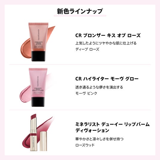 クリーンビューティーのリーディングブランド「ベアミネラル」を輸入販売するオルヴェオン グローバル ジャパン株式会社(本社:東京都中央区、代表:末政宏子)は、2025年1月31日(金)、新色「bare Rose Collection (ベアローズコレクション)」をテーマに、ベアミネラル 公式 インスタグラム(bareminerals_jp)でインスタライブを実施。