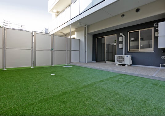 ・1階住戸はすべて専用庭付きで、人工芝を敷設し室内から庭への広がりは生活にゆとりを生み出します。遊び・くつろぎなど、様々な使い方で生活を楽しんでいただけるスペースを創出しました。
