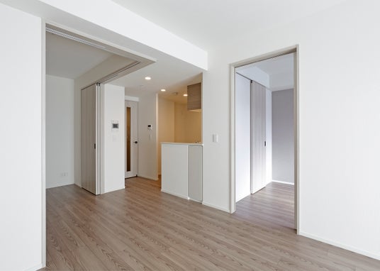 ・リビングと隣接する部屋の間仕切りにはスライドドアを採り入れ、お住まいの方の好きな空間にカスタマイズできるようにしました。リビングから続くオープンな空間にしたり、個室を作ったりと、その時々の暮らしに合わせて活用いただけます。