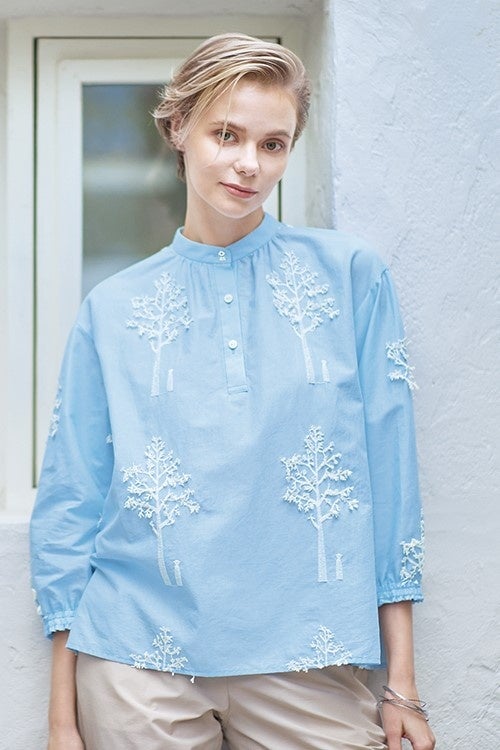 地中海の風を感じる軽やかさと、シアーな素材が織りなす透明感が特徴。ニュートラルなブルーと控えめな刺繍やスパンコールが、エレガントさと機能美を調和させ、着る人に心地よい喜びと開放感をもたらします。日常を優雅に彩り、身に纏うことでプレジャーなひとときを楽しめるコレクションです。