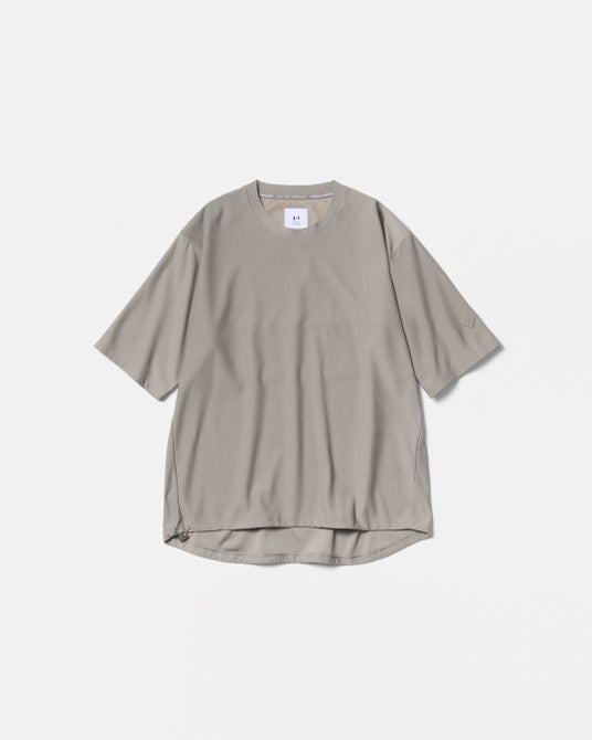 適度なゆとりを持たせたリラックスシルエットが特徴のハーフスリーブTシャツ。糸の段階でかさ高性と弾力性を高めるATY加工を施し、ポリエステルの耐久性を保ちながら、コットンのようなナチュラルな風合いを実現しました。背中には通気性を高めるベンチレーションを配置し、機能性とデザイン性を両立。さらに、ヘムにはドローコードを内蔵し、シルエットに変化をつけることが可能です。吸水速乾性や消臭機能も備えており、快適な着心地を提供します。